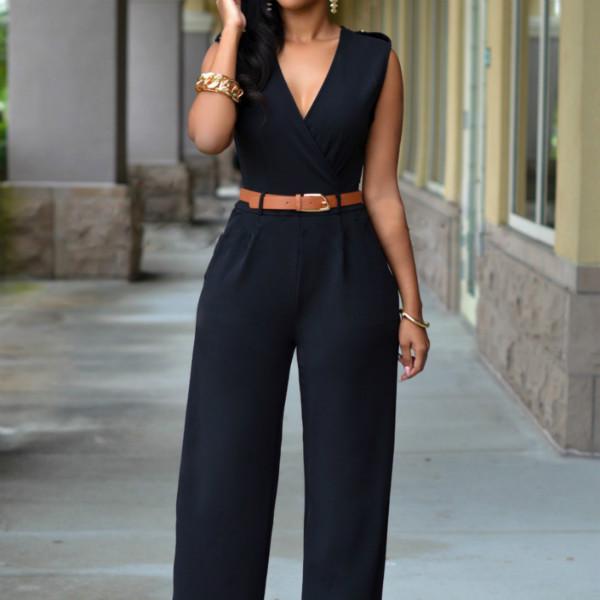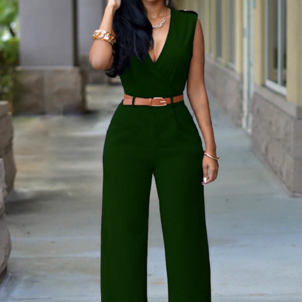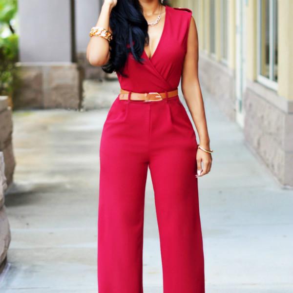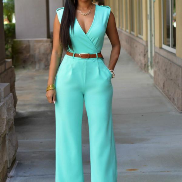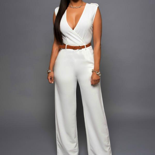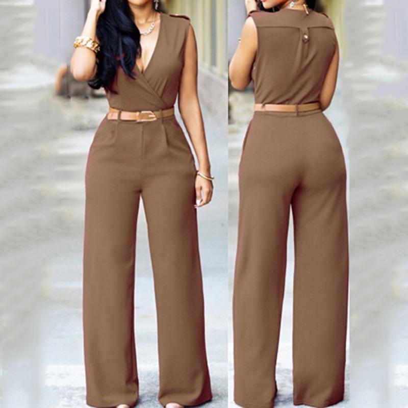 Весенне-летний женский комбинезон, модный повседневный комбинезон с высокой талией и v-образным вырезом, широкие брюки с поясом, брюки