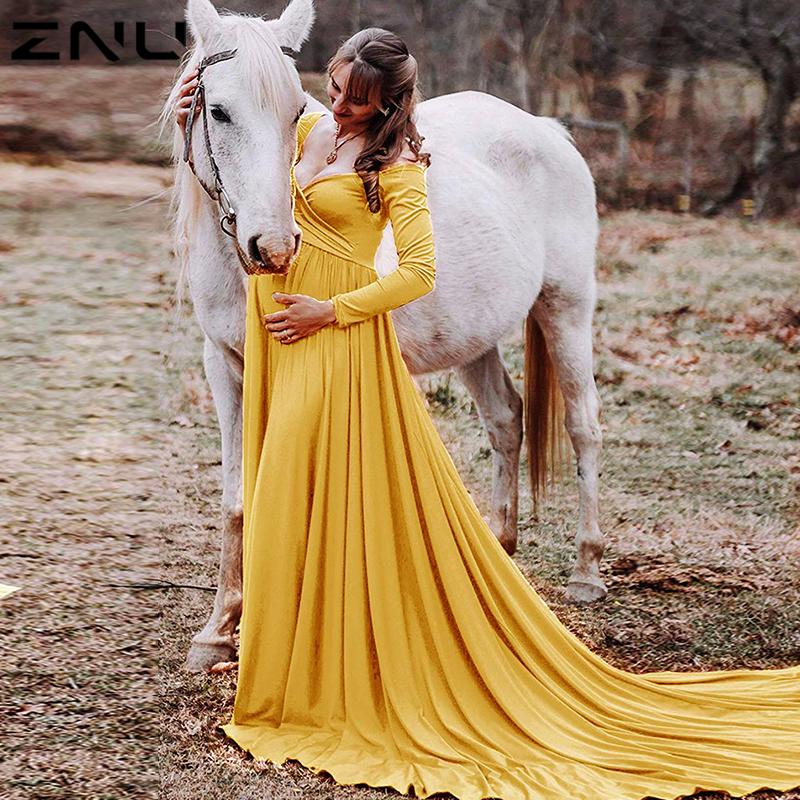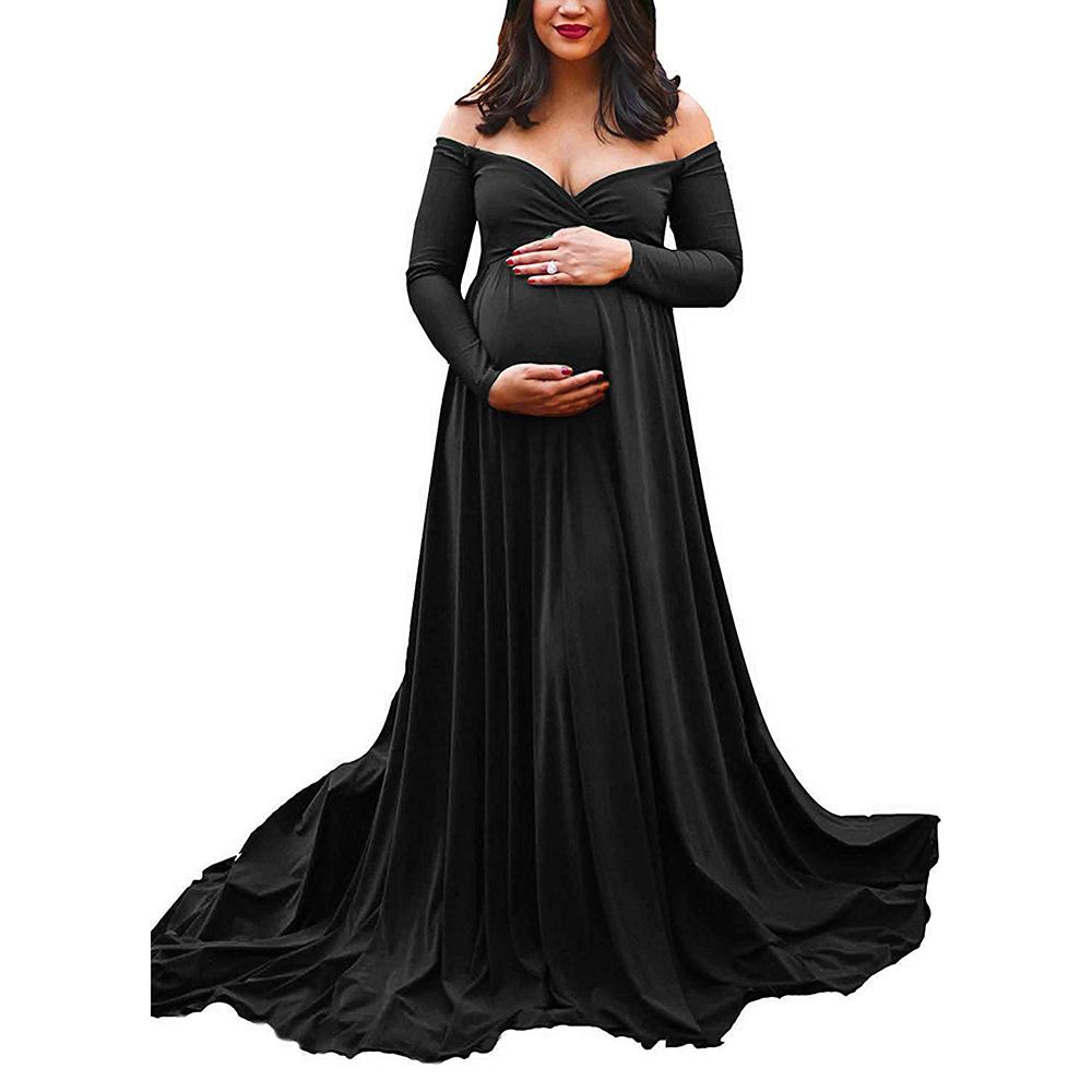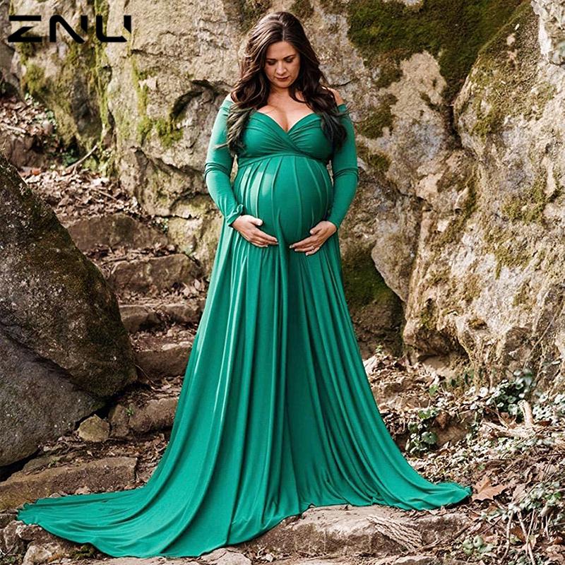 ZNU платье для выпускного вечера для беременных и беременных, сексуальное простое платье макси с открытыми плечами и длинными рукавами