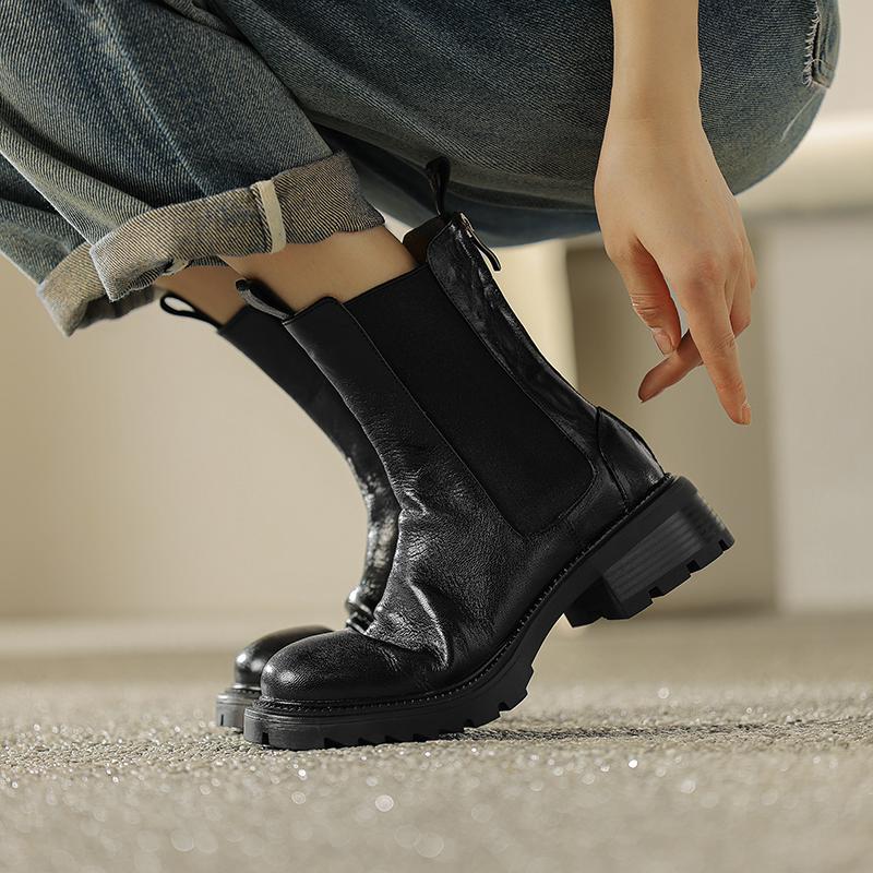 Krazing Pot Осенне-зимняя обувь из коровьей кожи с круглым носком на платформе, большие размеры, базовая одежда, ботинки челси без шнуровки на толстом среднем каблуке, женские ботильоны