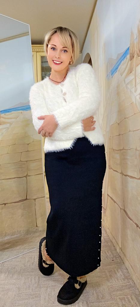 Мягкая, пушистая, приятная к телу кофта 🤗❄️❄️❄️на осенне -зимний период 🍁❄️☀️ Кофта короткая,на пуговицах, рукава длинные ☝️❄️ Материал смешанный: полиэстер, кашемир (возможно ☝️, так как очень мягкий). Не просвечивает, не электризуется, отлично тянется ☝️🍁❄️ Кофта идёт в одном размере ☝️❄️ Мои параметры:ОГ 94, ОТ 75 , ОБ 98, рост 1, 65 ☝️ Как на мне,Вы можете посмотреть на фото и видео, создать собственное мнение.Мне же кофта не очень понравилась:рукава короче,чем на фото продавца;так как материал лёгкий, тонкий,в груди все между пуговицами открывается;по длине она тоже короче, чем заявлена🤔 По моему замеру: ОГ 90 -100 см Длина 43 см Длина рукава 49 см☝️❄️ В общем,кофта красивая,белоснежная, невероятно нежная,к телу приятная, эластичная,но,как я считаю,со своими недочетами 🤔❄️❄️❄️