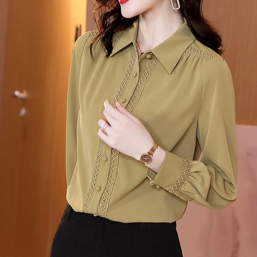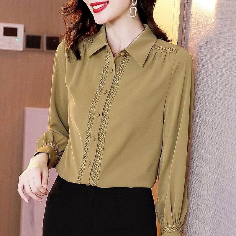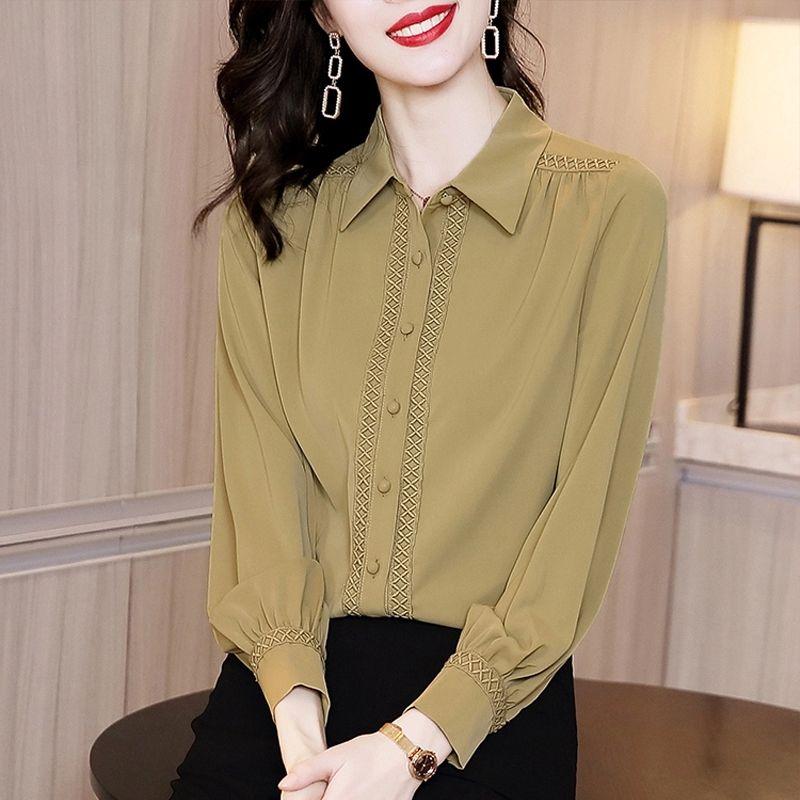 Весенне-осенняя новая французская рубашка-поло с длинным рукавом, кружевная шифоновая блузка, топ для женщин