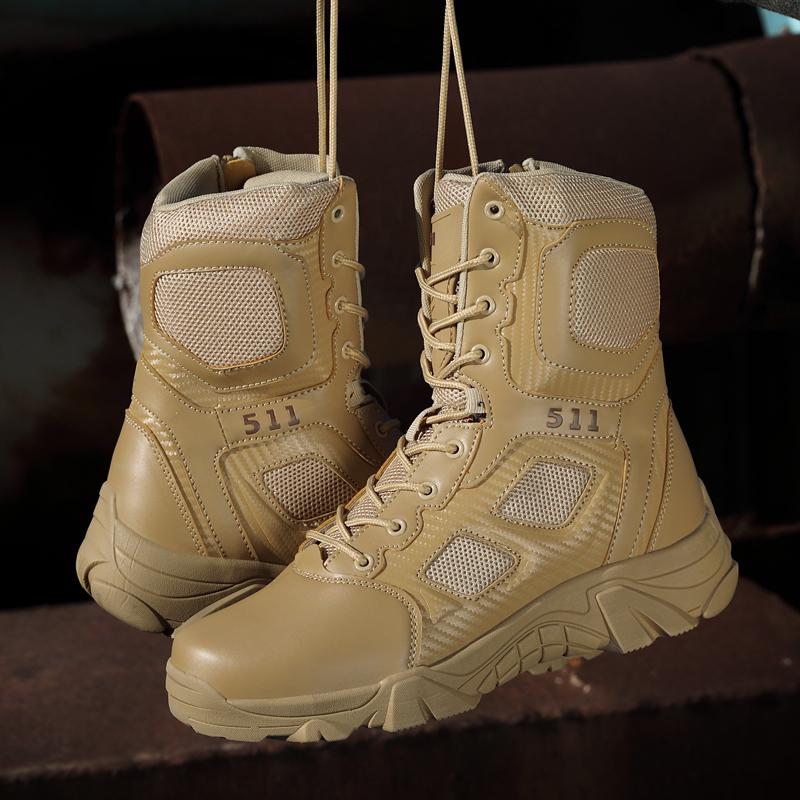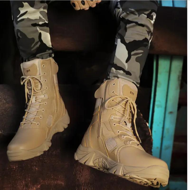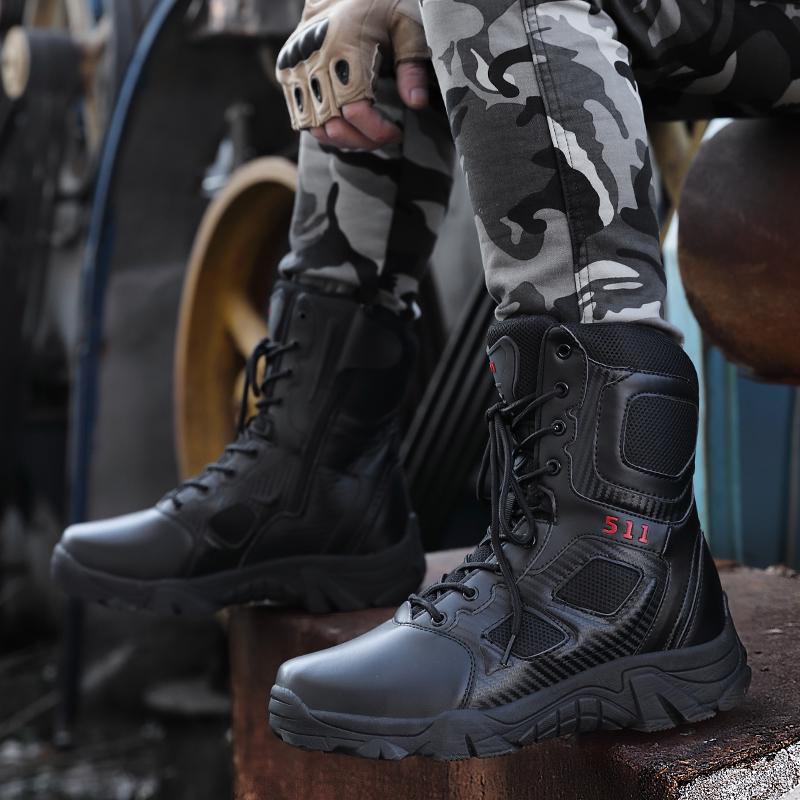 Тактические боевые ботинки. Мужские легкие тактические военные ботинки. Дышащие военные тактические рабочие ботинки с боковой молнией. Прочные кожаные ботинки.