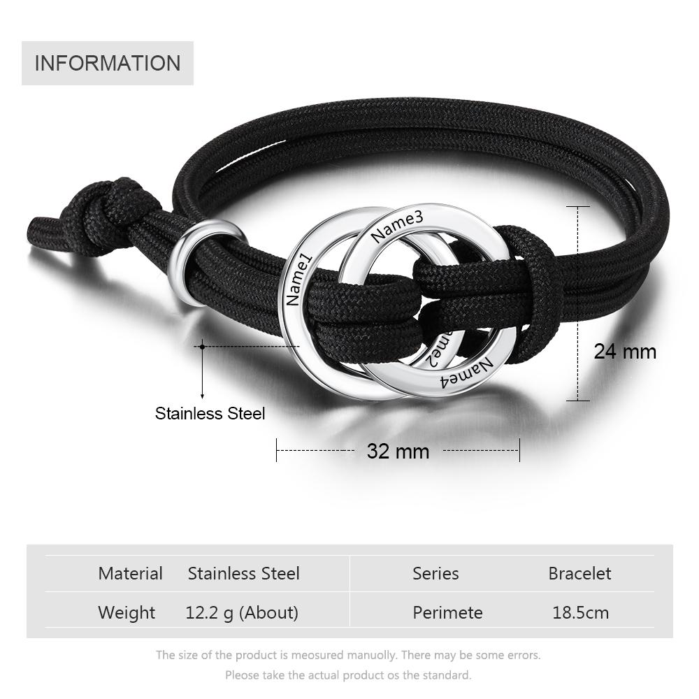 Персонализированные браслеты с гравировкой по кругу с 4 именами для мужчин, регулируемый браслет из нержавеющей стали для подарков на день рождения