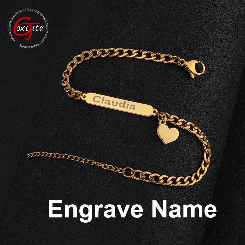 Goxijite гравировка буква имя дата женские мужские браслеты на заказ нержавеющая сталь регулируемые браслеты любовь для детей