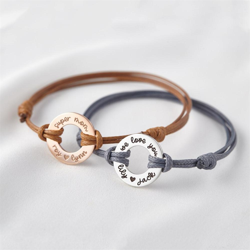 Персонализированный браслет из веревки для женщин, 12 цветов, регулируемый браслет из нержавеющей стали с индивидуальным именем и надписью