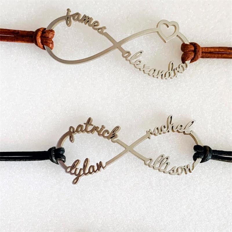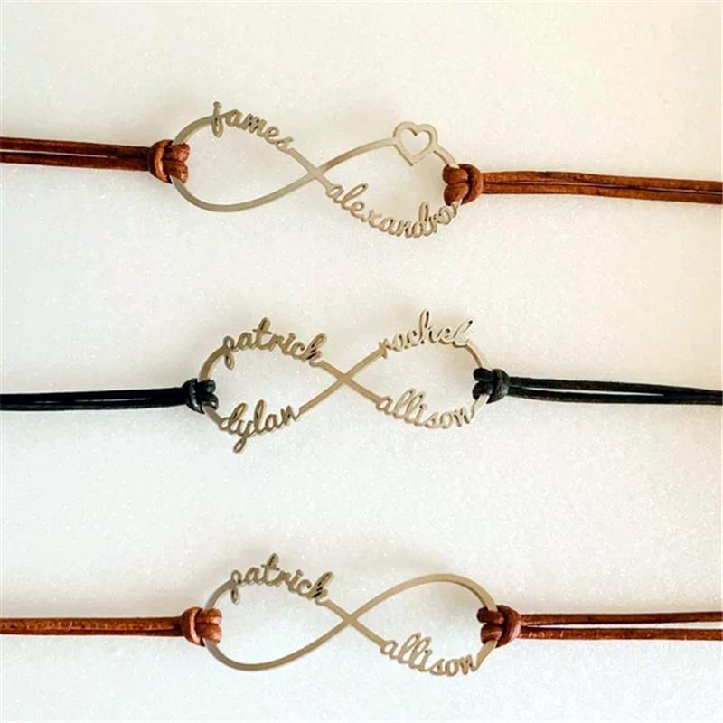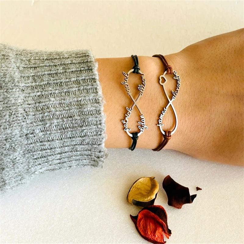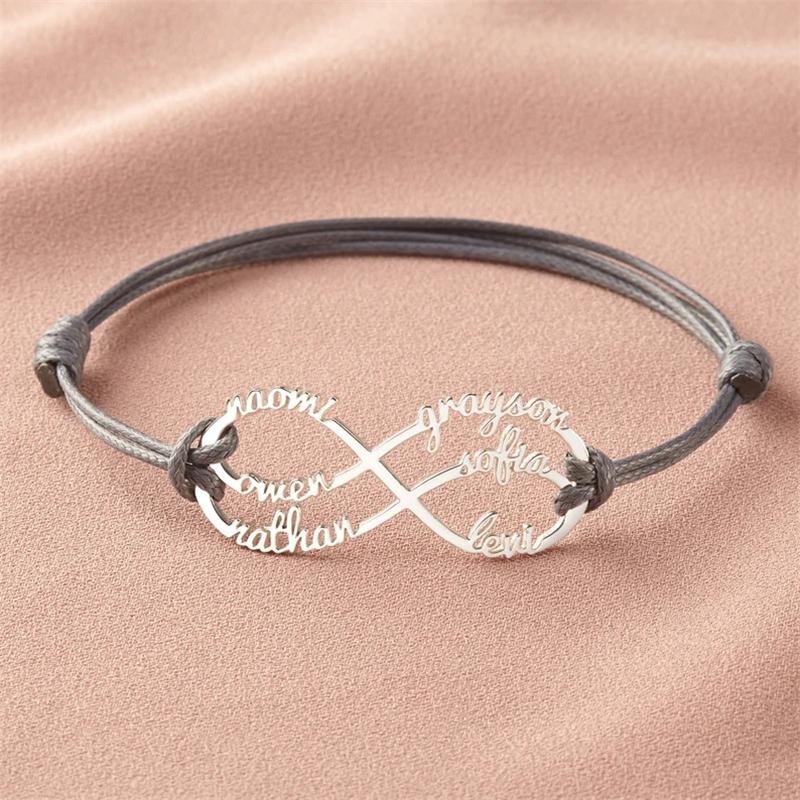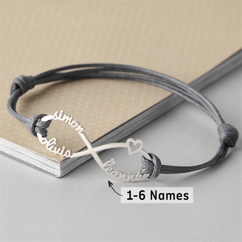 Браслет бесконечности на заказ, персонализированные именные браслеты для женщин и девочек, веревка ручной работы, регулируемая по индивидуальному заказу