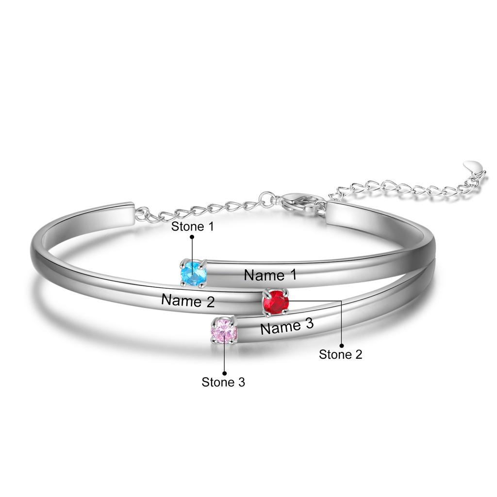JewelOra дизайнерские персонализированные семейные браслеты с 4 камнями для женщин, браслет с гравировкой имени на заказ, день матери