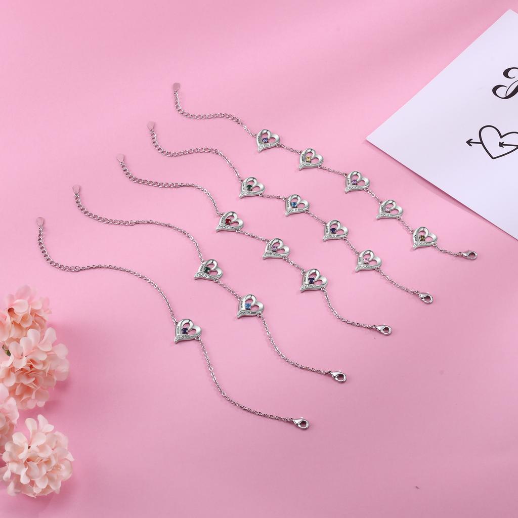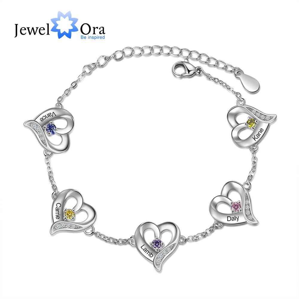 Персонализированные браслеты JewelOra с подвесками в виде нескольких сердец и камнями, с гравировкой имен от 1 до 5, рождественские браслеты и браслеты