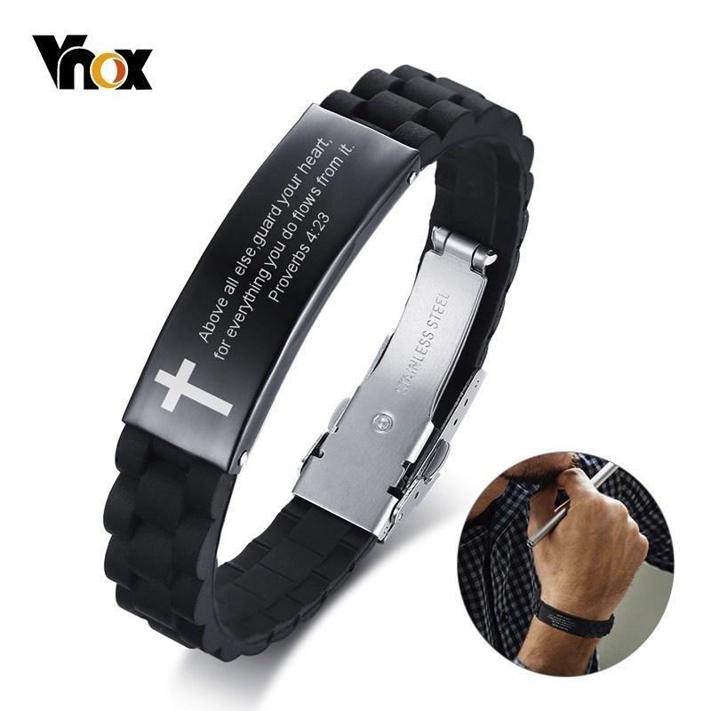 Vnox религиозный крест Иисус Писание цитата христианский библейский стих вдохновляющие вера силиконовые браслеты для мужчин персонализация — купить товар онлайн с бесплатной доставкой до всему миру!