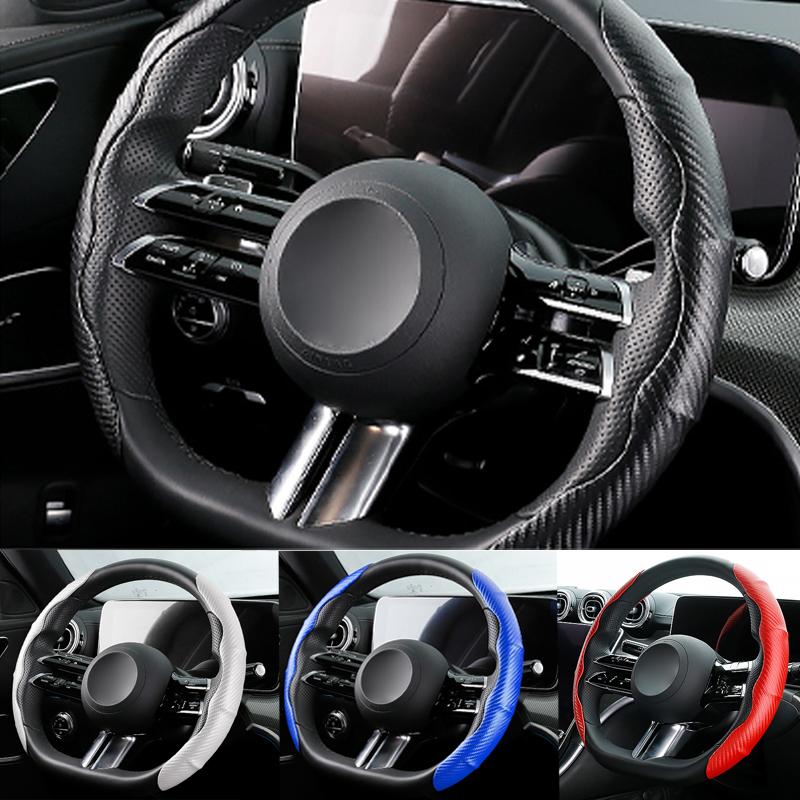 1 пара автомобильных чехлов на руль из углеродного волокна, авто универсальный чехол на руль, автомобильные аксессуары, противоскользящий интерьер — купить товар онлайн с бесплатной доставкой по всему миру!