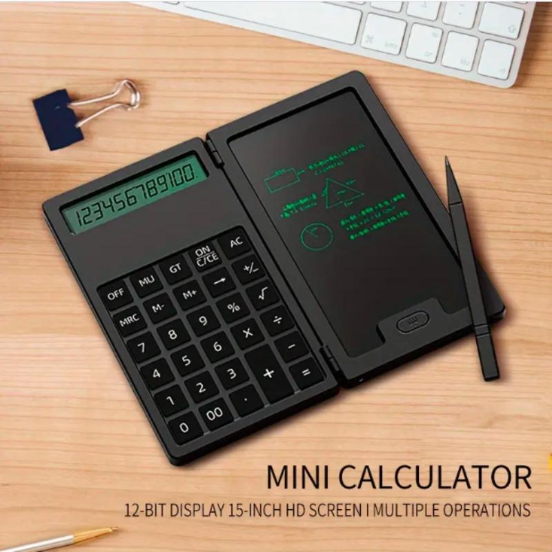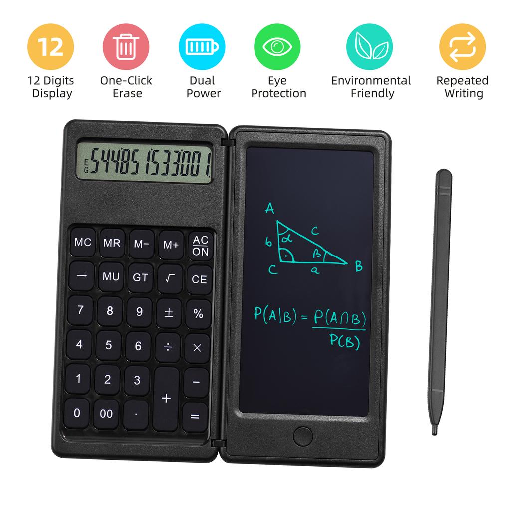 6-дюймовый ЖК-планшет для письма, цифровой блокнот для рисования, складной калькулятор, 12-значный дисплей со стилусом, кнопка стирания, функция блокировки