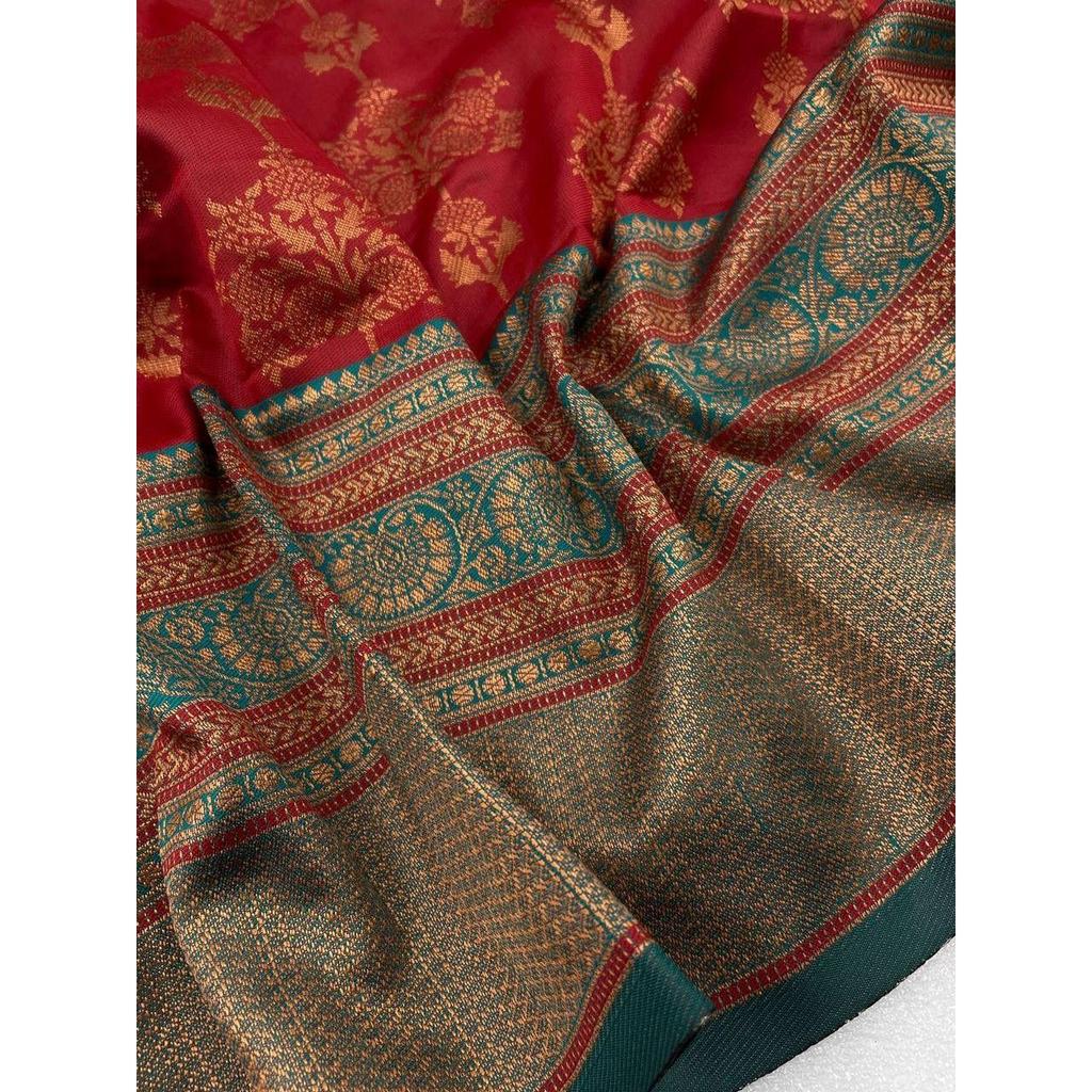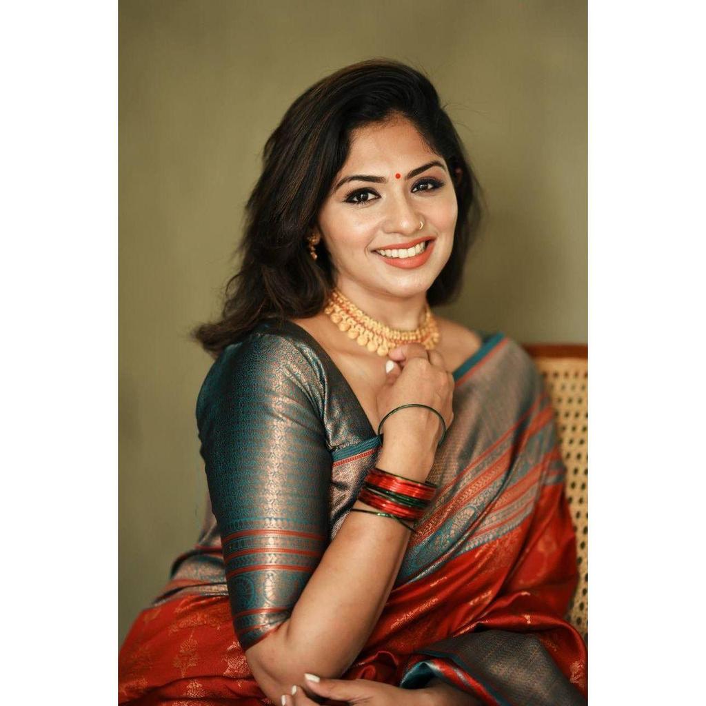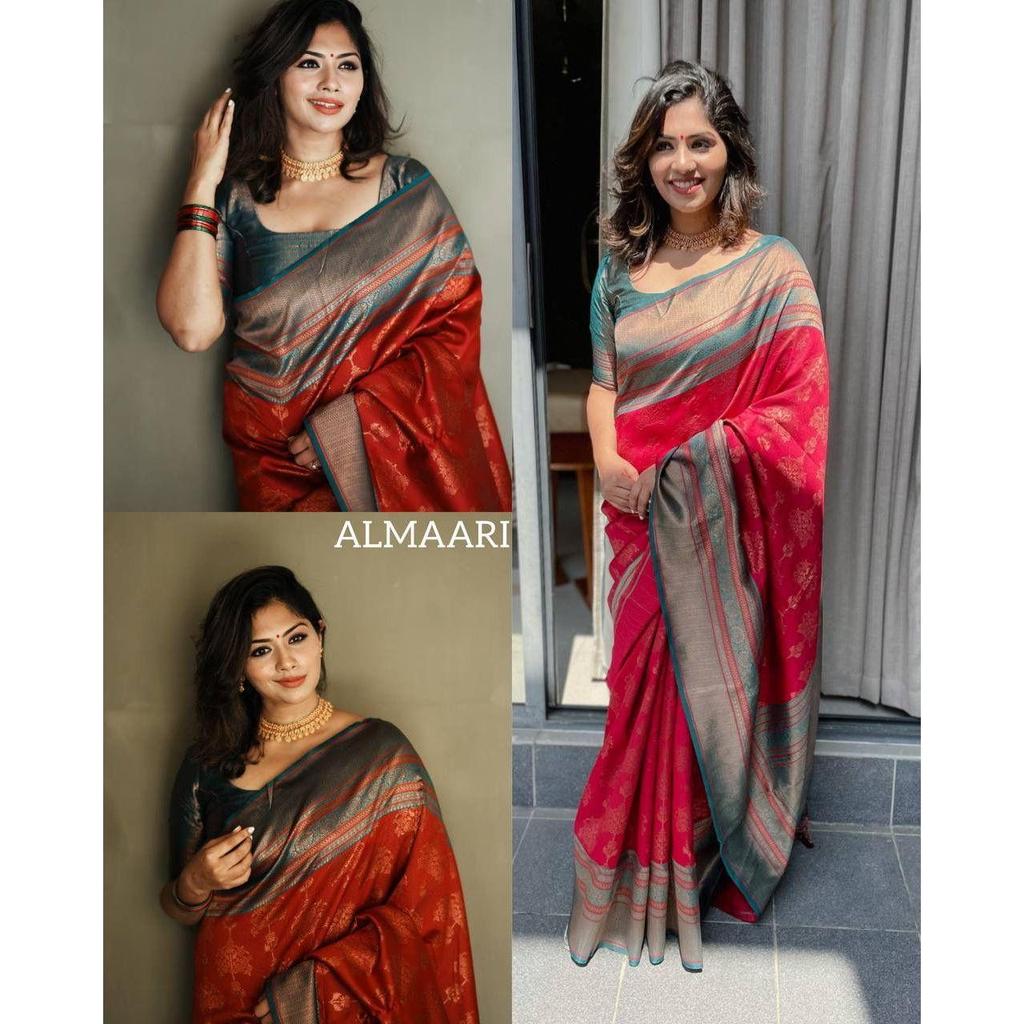 Это красивое сари элегантно украшено великолепным жаккардовым плетением, которое придает образу идеальный вид.