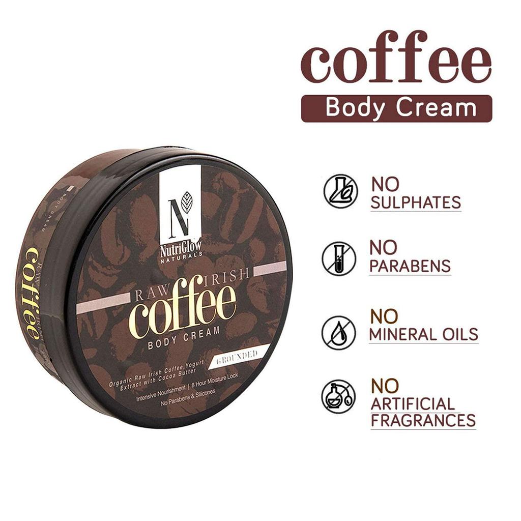 Крем для тела с сырым ирландским кофе от NUTRIGLOW Natural для глубокого увлажнения, естественного сияния, уменьшения темных пятен и целлюлита, устранения признаков старения, без парабенов и сульфатов, 7,05 унции
