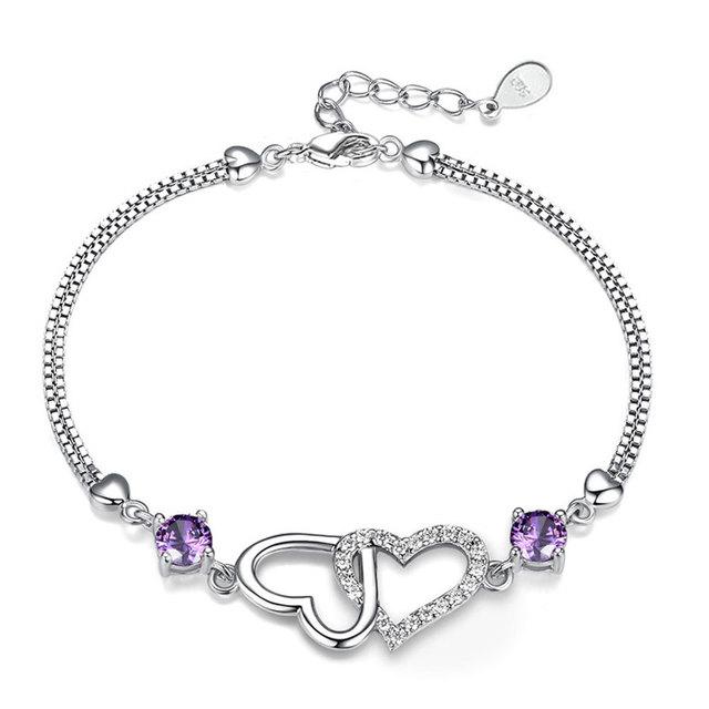 Браслет из стерлингового серебра 925 пробы с инкрустацией натуральным аметистом и цирконием, женский браслет в форме сердца, очаровательные ювелирные изделия, подарок, свадебные украшения