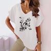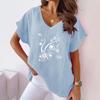 Лето 2023, женская повседневная хлопковая конопляная футболка с v-образным вырезом и цветочным принтом, футболка с короткими рукавами и летучей мышью