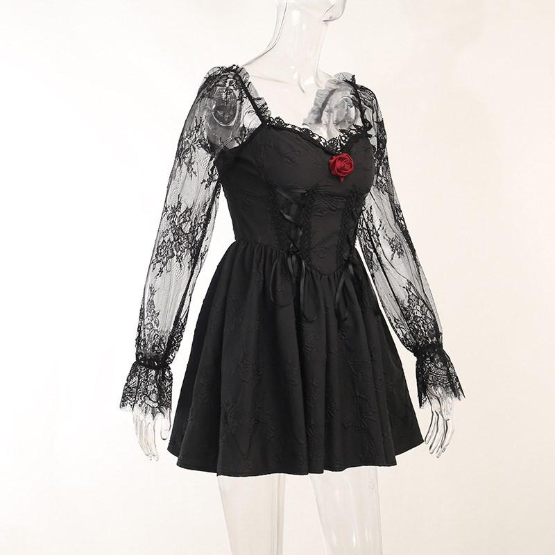 Готические вечерние женские платья трапециевидной формы в стиле гранж, прозрачное облегающее темное сексуальное жаккардовое кружевное платье Лолиты, винтажное платье Harajuku — купить товар онлайн с бесплатной доставкой до всему миру!