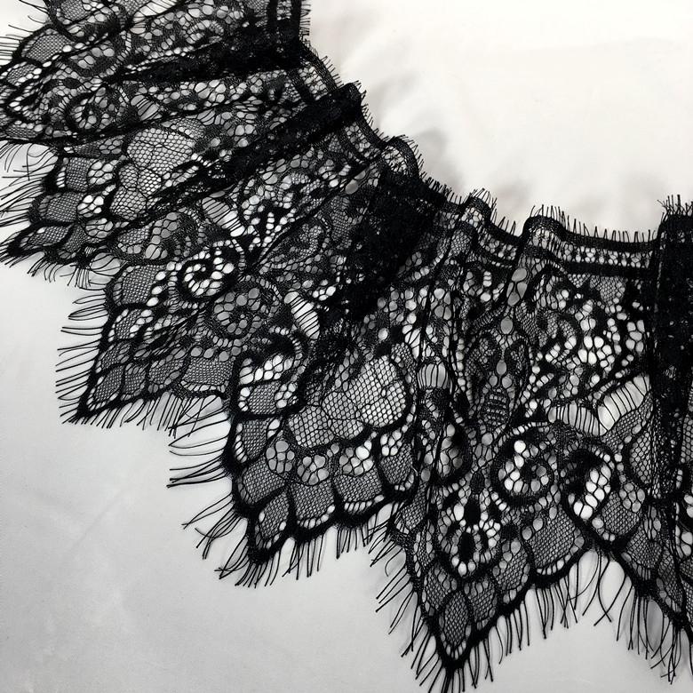 Французское широкое кружево с ресницами, черное кружево, кружевная ткань, женская одежда, подол, кружевной материал «сделай сам», кружево