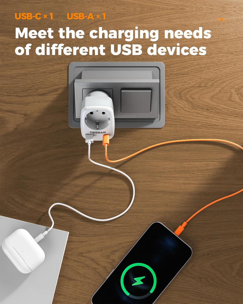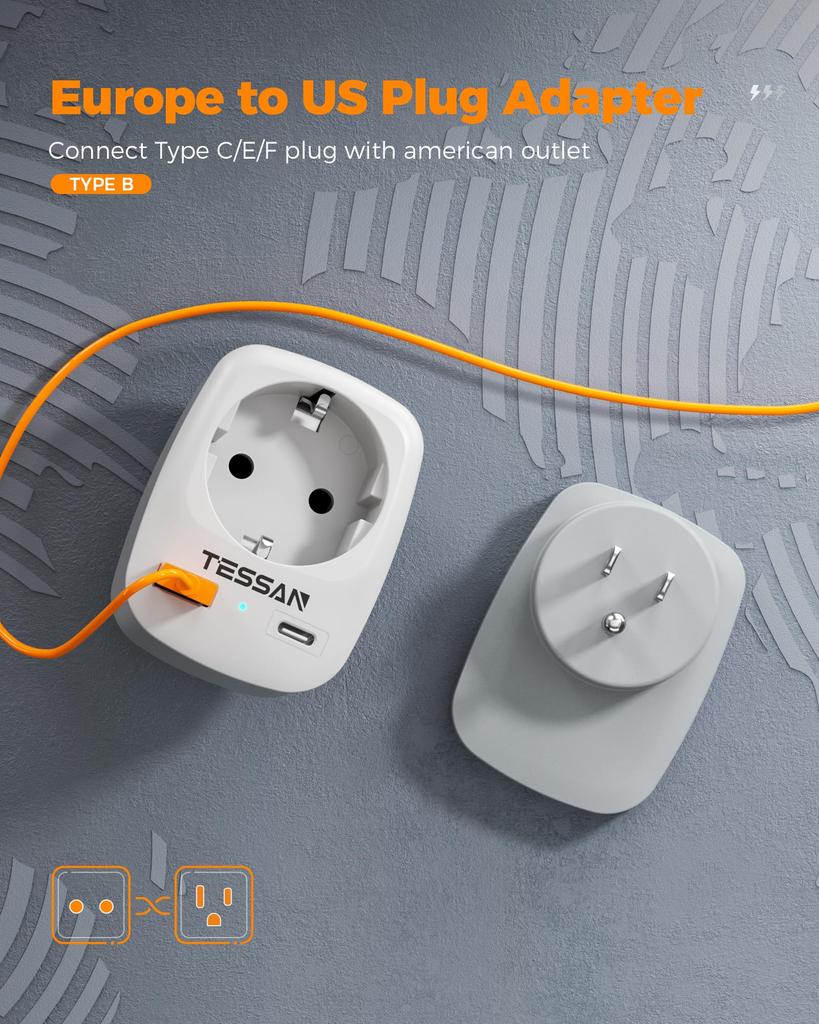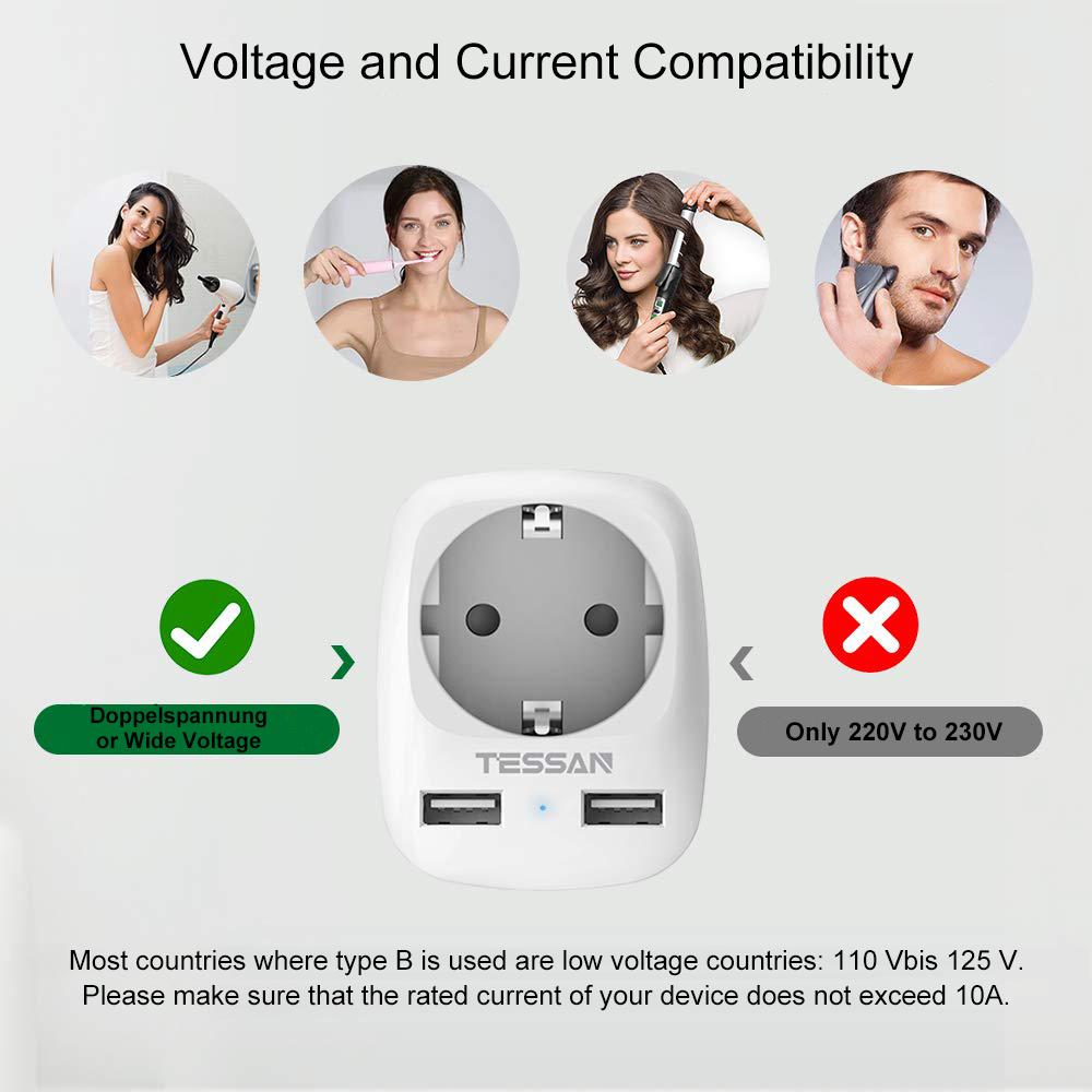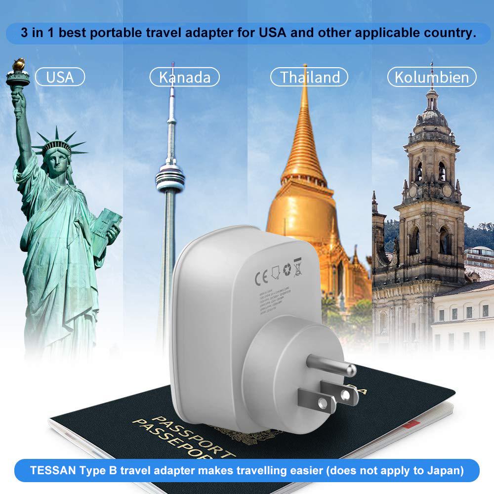 TESSAN 3 в 1 разъем Адаптер питания Америка Германия штекер с 2 USB (2,4 А)