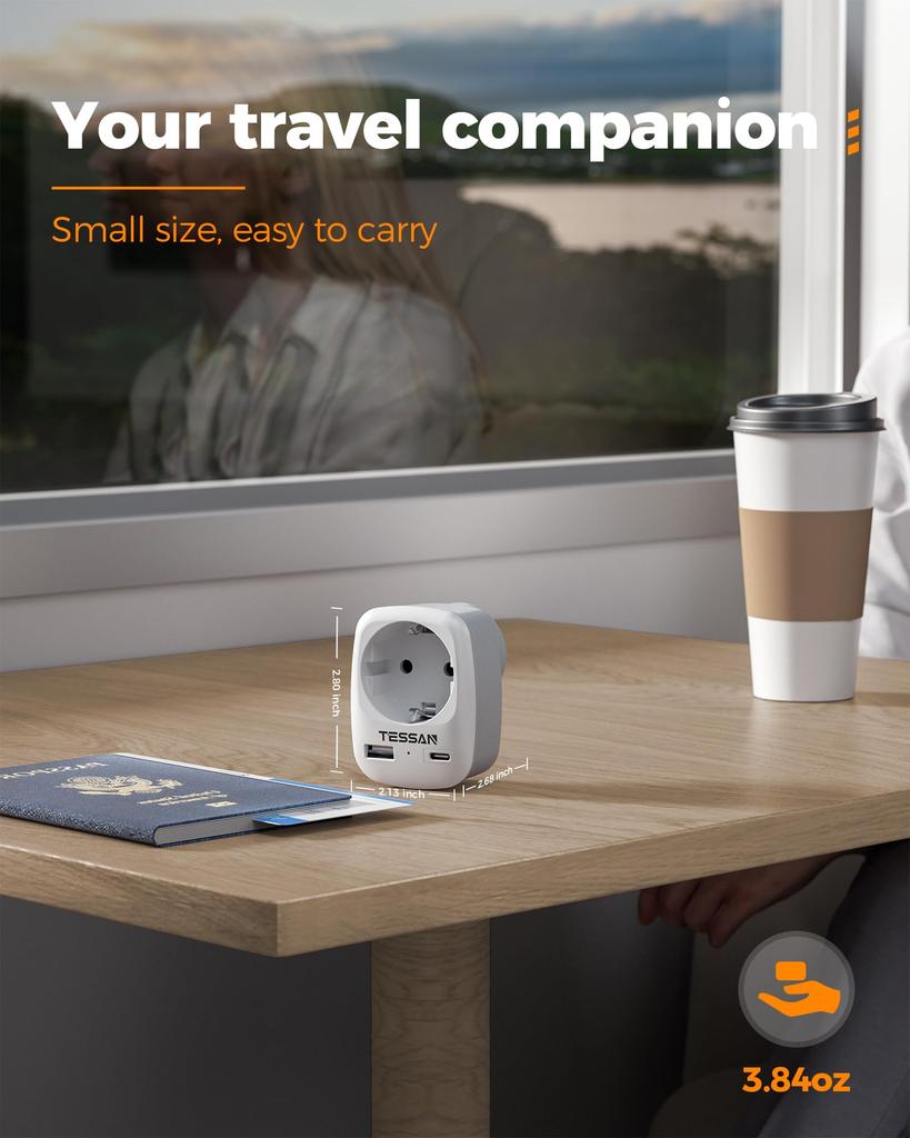 Благодаря размеру 7.08x 5.37x 6.79cm, этот универсальный адаптер компактен и портативный. Концепция входа 3 в 1 отвечает различным требованиям вашей поездки и экономит вам много места для багажа без необходимости брать с собой дополнительные адаптеры или розетки.