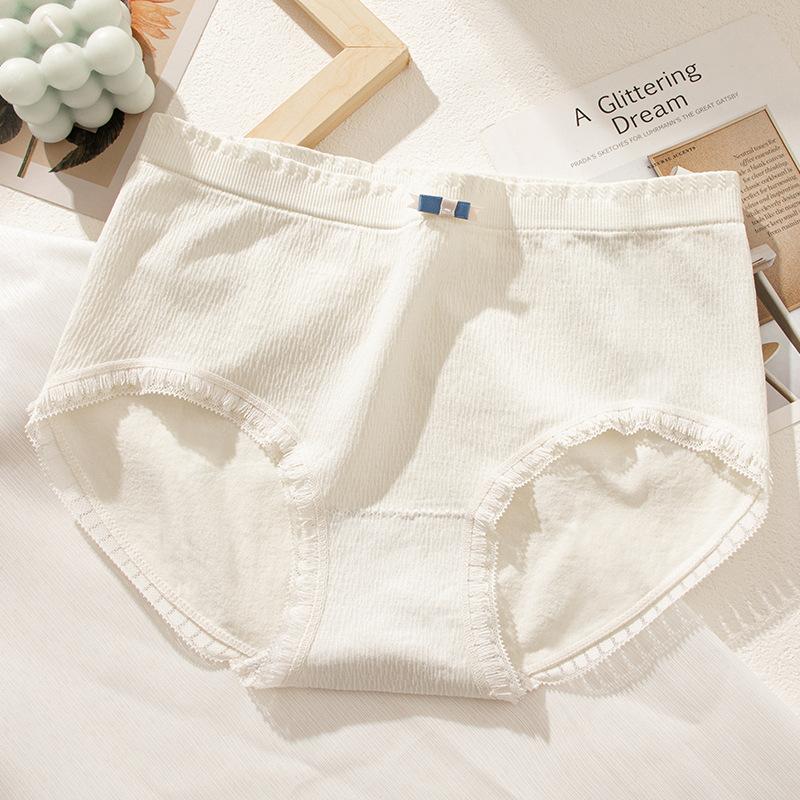 Милое женское нижнее белье из чистого хлопка, простые дышащие трусы со средней талией, дышащие кружевные края, сексуальные трусы для девочек