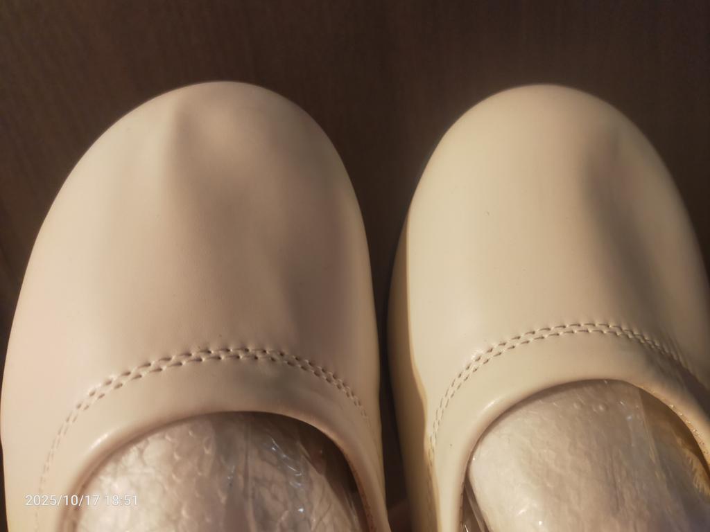 Размер 38(23) жмут на ноге 36(22,5). Приехали с мятыми носками, без каких либо подушечек внутри для сохранения формы. Другую обувь получали с подушечками и не мятую. Две недели стояли на растяжке с подушечками, но до конца так и не выправились, продолжают жать ногу.