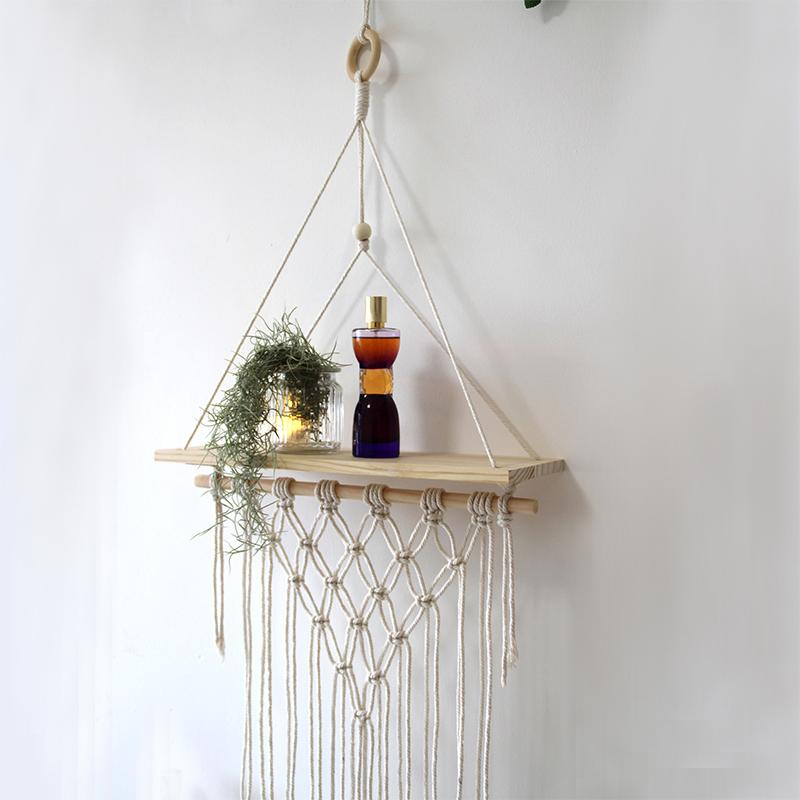 Гобелен ручной работы с кисточками Настенная полка Настенная полка макраме