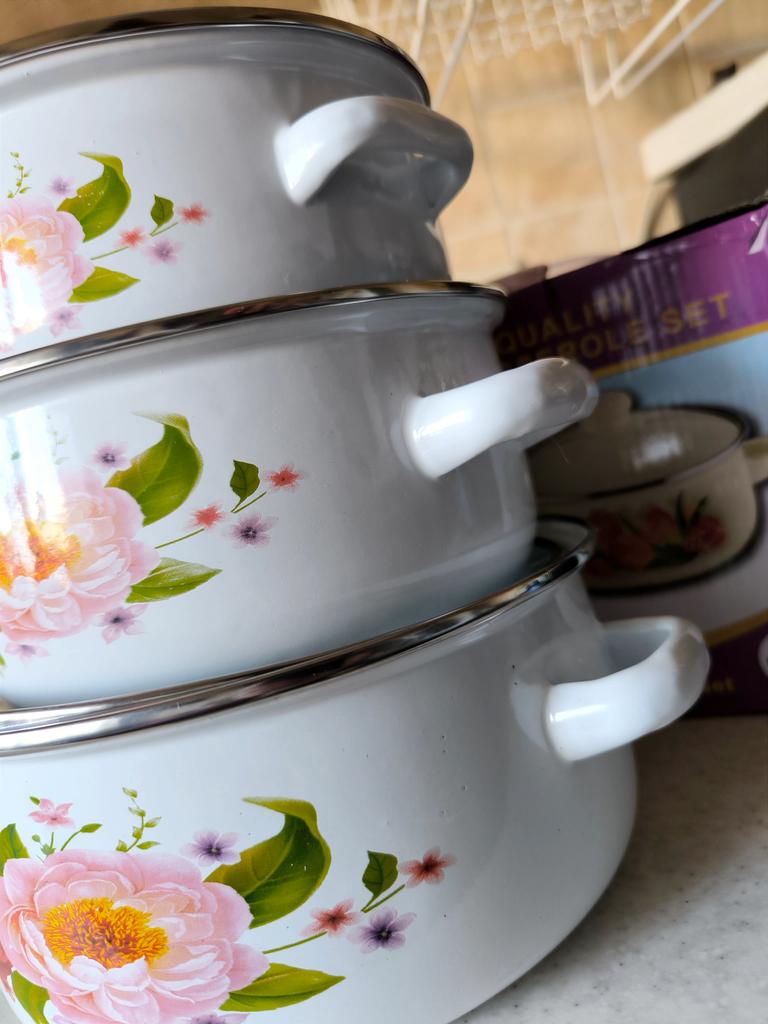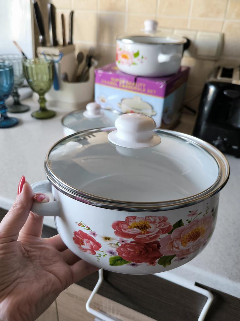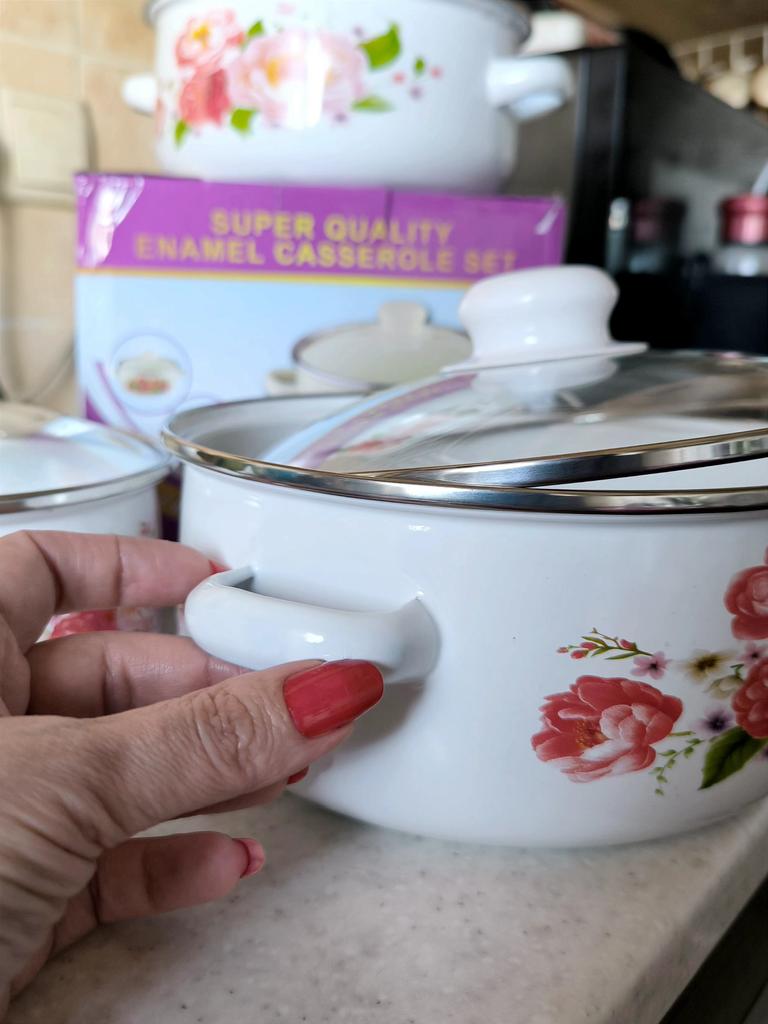 Отличный набор кастрюлек ❤️ Мы девочки, знаем, что новые кастрюльки это всегда праздник))) Я всегда радуюсь новой посуде, особенно, если она качественная. В наборе три кастрюльки разных размеров: - 1 литр, диаметр 16 см, - 1,5 литра, диаметр 18 см, - 2 литра, диаметр 20 см. Литровая совсем маленькая, но бывает, что нужно именно такая. Приходят в красивой фирменной коробке - можно брать и для подарка. Кастрюльки эмалированные. Состояние идеальное - не было ни сколов, ни заусениц. Крышки прозрачные. Рекомендую 👍 Удачных покупок ❤️ Ваша Вика 🙂