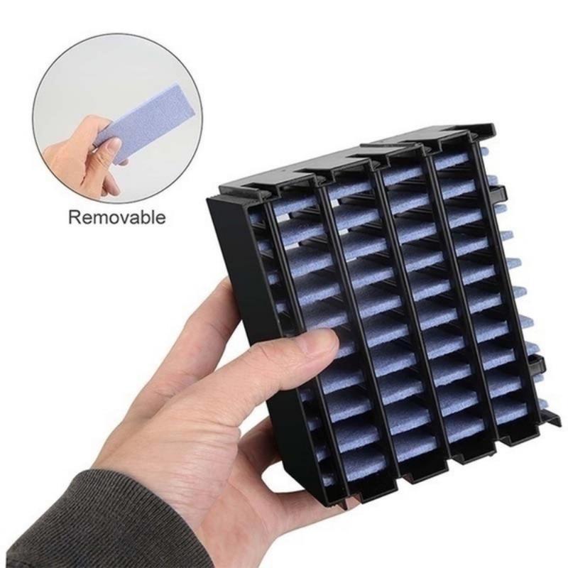 【ПОРТАТИВНЫЙ USB-ВОЗДУХООХЛАДИТЕЛЬ】:Размер персонального кондиционера составляет 5,7 х 6,3 х 6,3 дюйма, небольшой размер и портативный, подходит для охлаждения и увлажнения личных помещений, не затрагивая окружающих;После того, как туман пройдет через фильтр для воды, чтобы обеспечить свежий и прохладный воздух для вашего личного пространства.