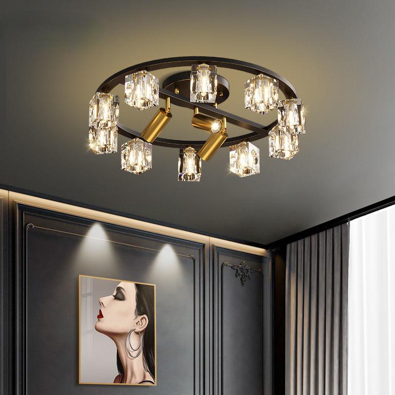 Легкий роскошный элитный потолочный светильник для гостиной, полностью медный кристалл с прожекторами, лампы для спальни, кабинета