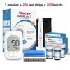 [Комплект глюкометра 200 - мг/дл]: 1 х Устройство для прокалывания, 1 х Глюкометр-мг/дл, 1 х ПУ мешок, 200 х Бутилированные тест-полоски, 200 х Ланцеты