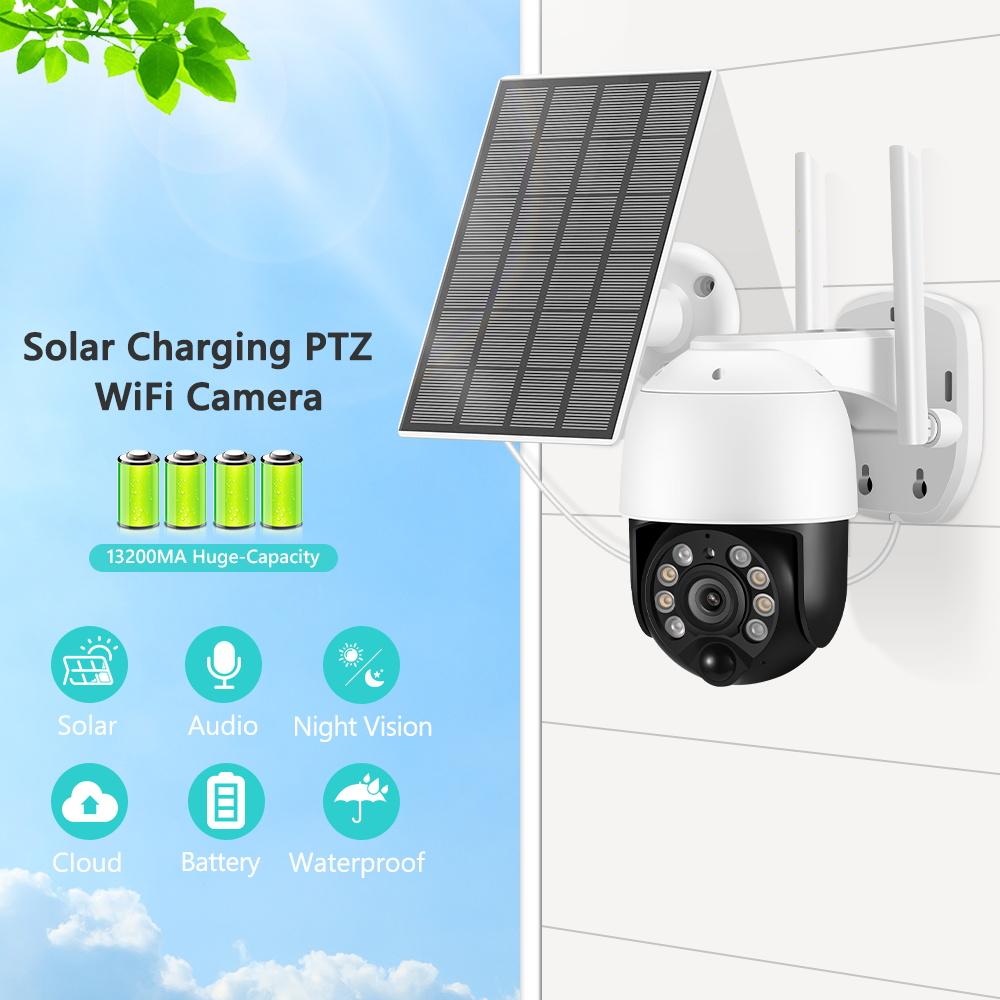 3-мегапиксельная Wi-Fi IP-камера с солнечной панелью, беспроводная уличная PTZ-камера видеонаблюдения, обнаружение человека, PIR, ночное видение, камеры видеонаблюдения