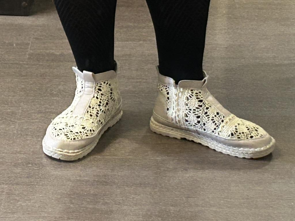 Получила ботиночки((На свой 38 взяла 40-впритык,то есть размер стопы 24,5-41 был бы лучше,чем 40,хотя читала отзывы и брала на 2 размера больше((ну,ладно носить буду,так как они тряпочные -ни давят нигде. Сделаны оооочень не аккуратно,кругом торчат нитки,резинки никак не обработаны,прям расчет на то,чтобы один раз надеть и развалятся точно,хотя на ноге смотрятся неплохо и подошва мягкая.В целом в них комфортно,но качество-оставляет желать лучшего(((поэтому и снимаю звёзды. А ещё пришли испачканные с одной стороны,хорошо,что заказала ластик,стёрлось всё,но в магазине бы я такие не купила,попросила бы без пятен.Рекомендовать не буду.