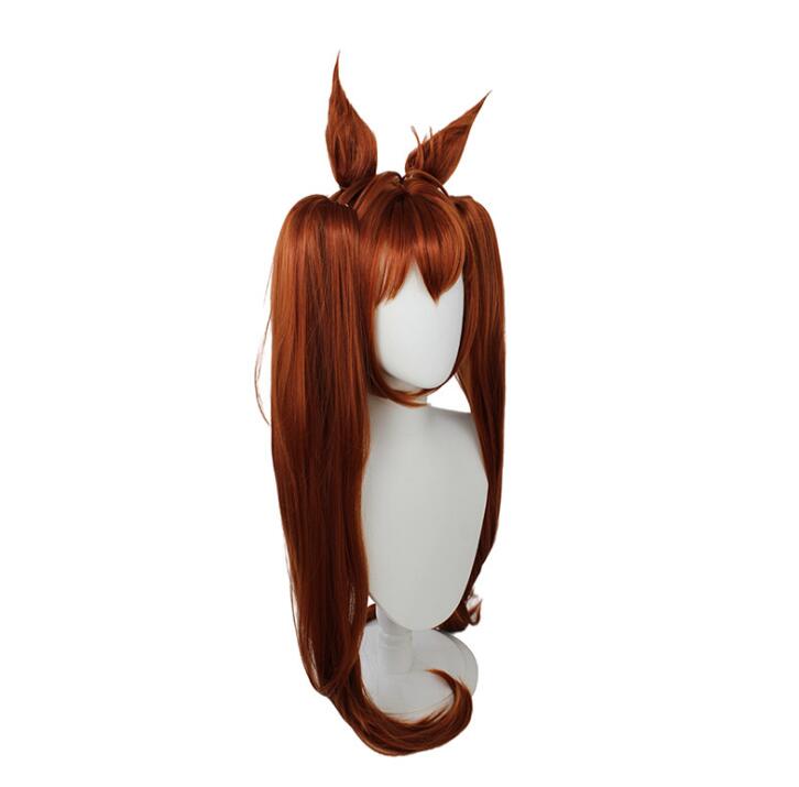 90 см Uma Musume Pretty Derby Daiwa Scarlet Парик для косплея Оранжево-красный парик с челкой Уши-конский хвост Синтетические волосы Термостойкие