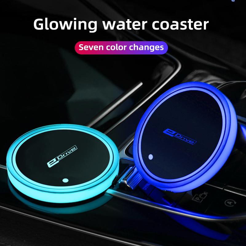 Автомобильная светящаяся подставка для чашки с водой, 7 красочных автомобильных светодиодных атмосферных светильников для BMW EDrive, автомобильный коврик с логотипом, окружающая подсветка