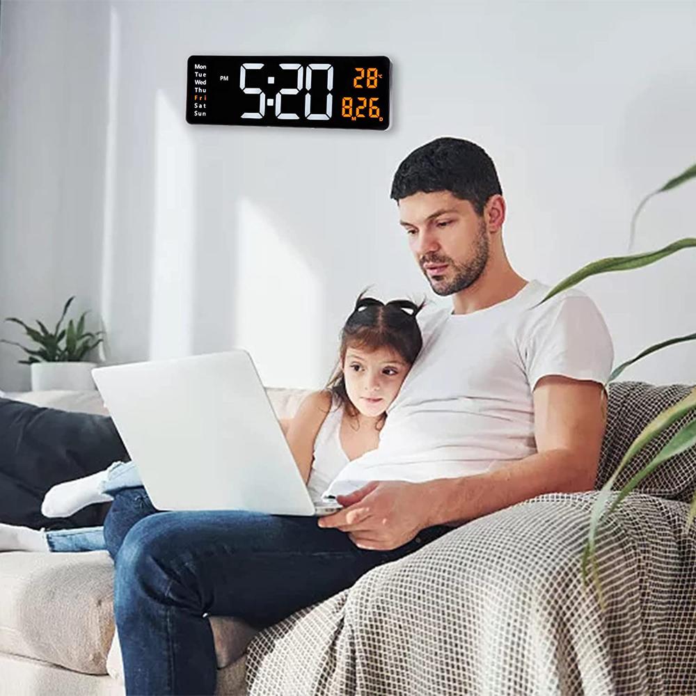 Цифровые настенные часы, 16-дюймовый большой будильник, пульт дистанционного управления, дата, неделя, температура, часы, двойной будильник, светодиодный дисплей
