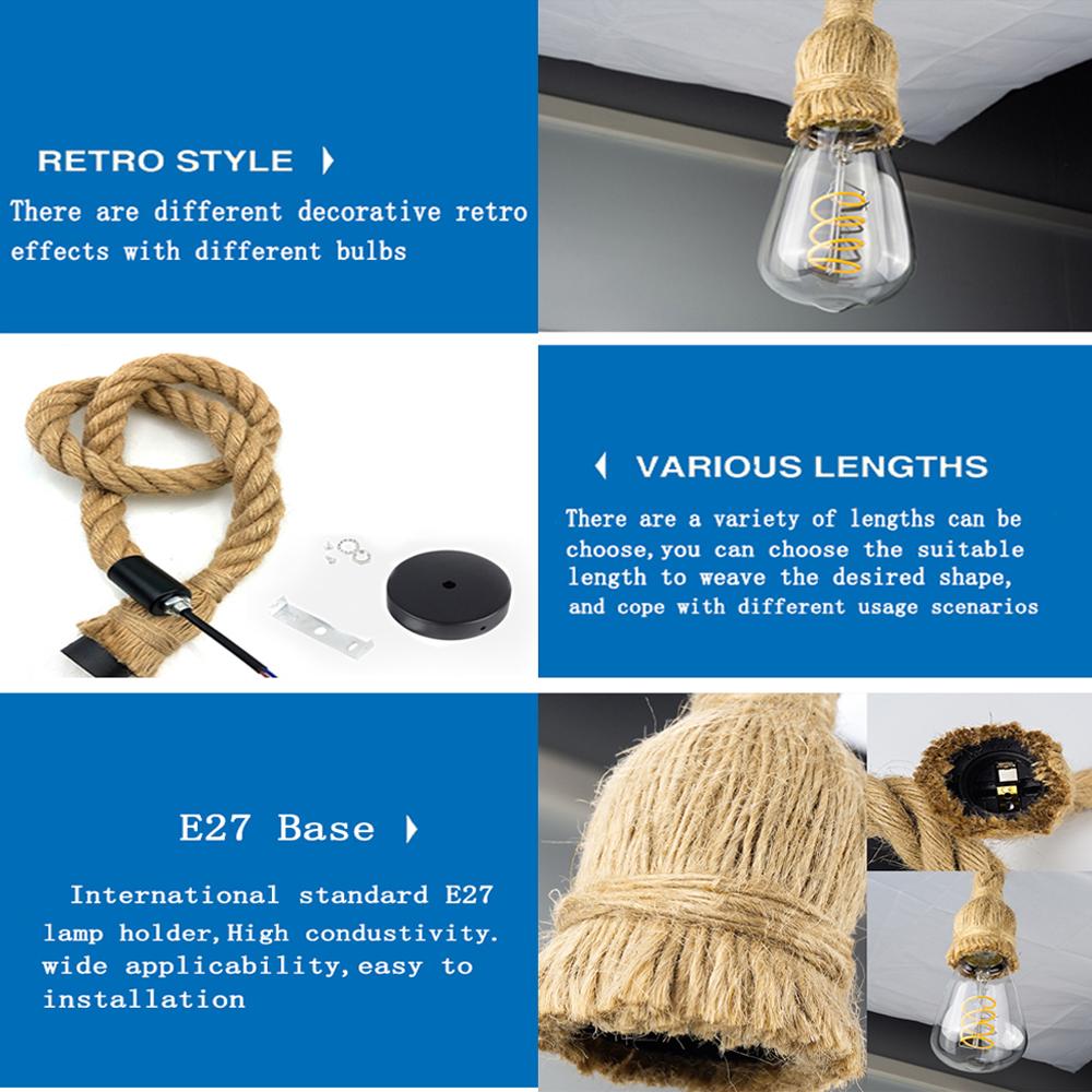 Ретро винтажный подвесной светильник из пеньковой веревки, американские промышленные подвесные светильники, креативные потолочные светильники в стиле лофт в стиле кантри E27 Edison