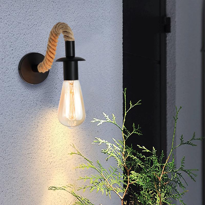 Винтажный настенный светильник из пеньковой веревки, деревянный настенный светильник, 3 стиля, домашний лофт, промышленное бра, прикроватный светильник, уличный настенный коридор