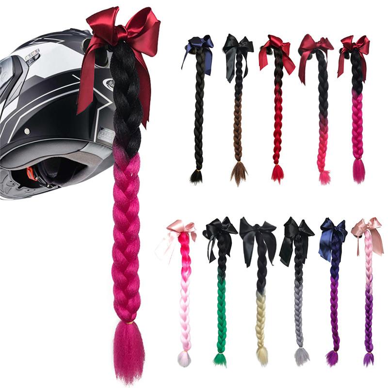 22-дюймовый мотоциклетный шлем с косами, женский парик с косами для мотоциклетных шлемов, 11 цветов, двойная косичка, хвост с присоской
