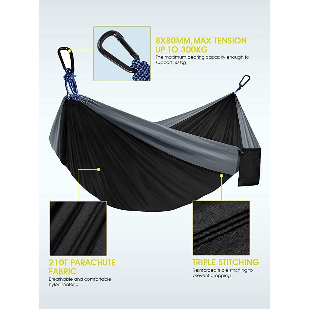 ПРОЧНЫЙ И ЛЕГКИЙ : Изготовлено из нейлонового прядения, представляет собой прядильное шелковое полотно из нейлоновых нитей.. Он обладает характеристиками тонкости, гладкого шелковистого прикосновения, приятного для кожи, прочного и износостойкого, моющегося и быстросохнущего. Лучший выбор материала для гамака премиум-класса.. Многократная строчка обеспечивает лучшую грузоподъемность. Компактный и складной