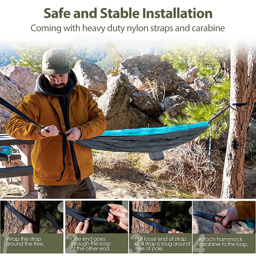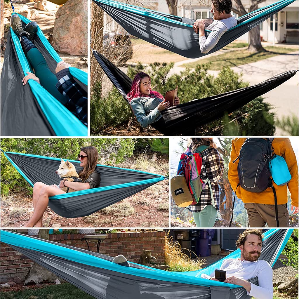 НАСЛАЖДАЙТЕСЬ РАССЛАБЛЕНИЕМ В ГАМАКЕ НА УЛИЦЕ : Этот стильный и практичный уличный гамак можно взять с собой в поход, в поход, на рыбалку и т. д. Что еще? Это также хороший выбор для сада или заднего двора, установка красивого и расслабляющего гамака для семьи, детей, себя, наслаждения солнцем и на открытом воздухе.