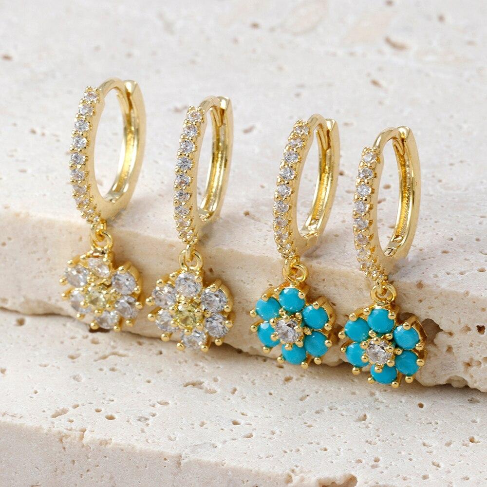 Модные серьги-капли из нержавеющей стали с цветком и цирконием для женщин, французские легкие роскошные серьги с подвеской, изысканные серьги, рождественские украшения
