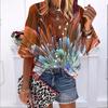 2023 Лето-Осень Новые модные женские топы с синими лепестками и принтом с половиной рукавом, повседневная рубашка больших размеров на пуговицах с объемными рукавами
