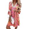 Летнее кружевное лоскутное платье с v-образным вырезом и рюшами, рукавами три четверти и цветочным принтом, женская одежда трапециевидной формы больших размеров