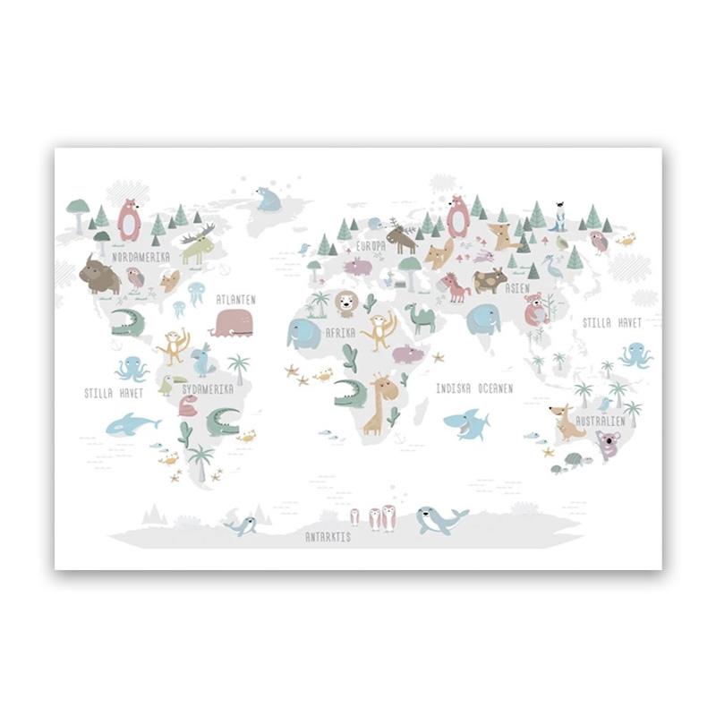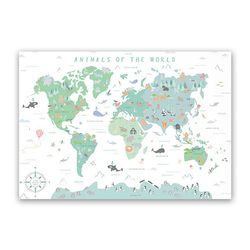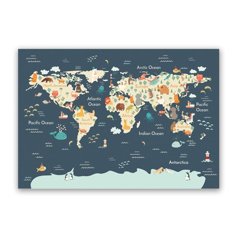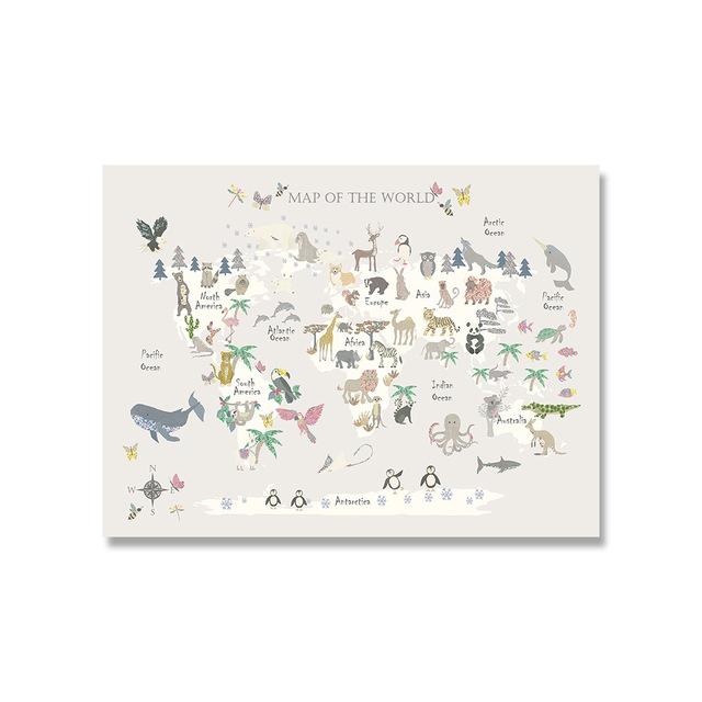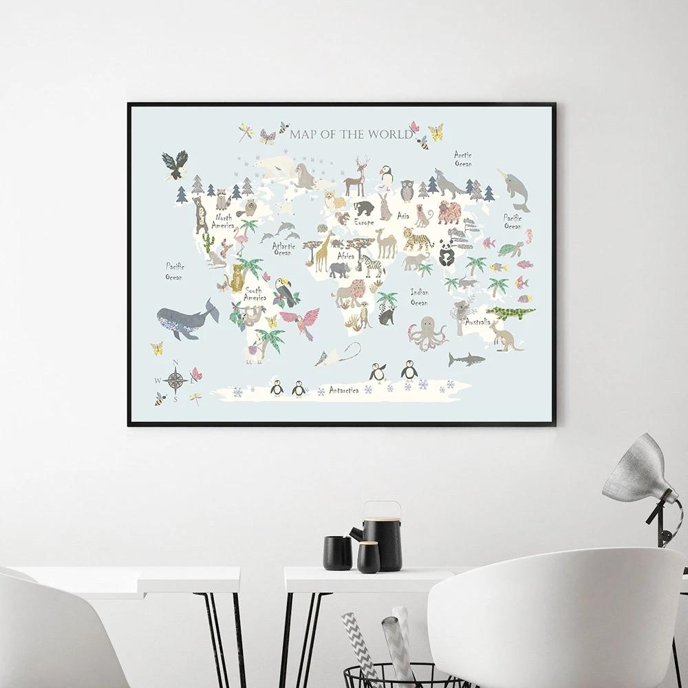 Настенный художественный постер для детской комнаты с принтом карты мира животных, мультяшная картина на холсте для детей, спальни, скандинавские картины, декор для детской комнаты