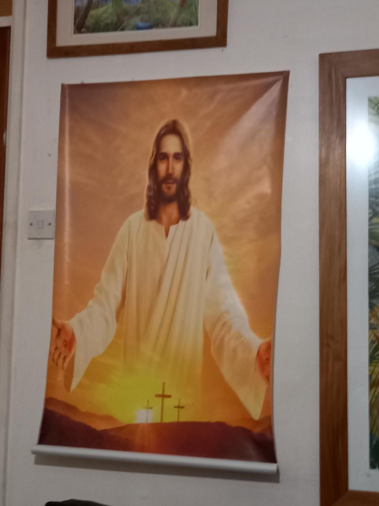 Холст с изображением Иисуса Христа выполнен качественно. Спасибо продавцу.