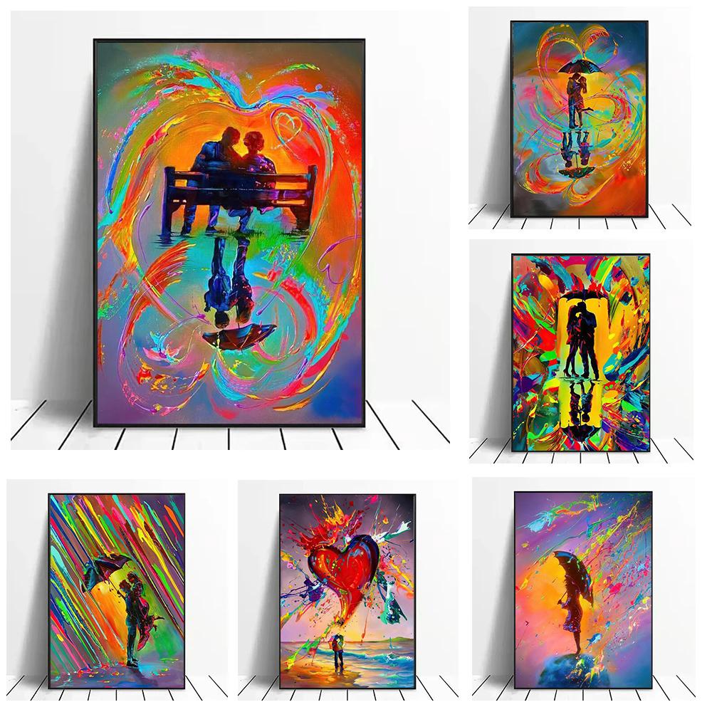 Акварель Радуга Дождь Любители Холста Картины Абстрактные Граффити Искусство Пары Обниматься Настенная Картина для Гостиной Домашний Декор
