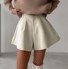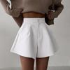Женские шорты с высокой талией, повседневные свободные трапециевидные широкие шорты, однотонные модные карманные офисные женские брюки, уличная одежда, короткие женские брюки