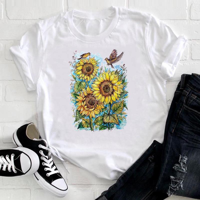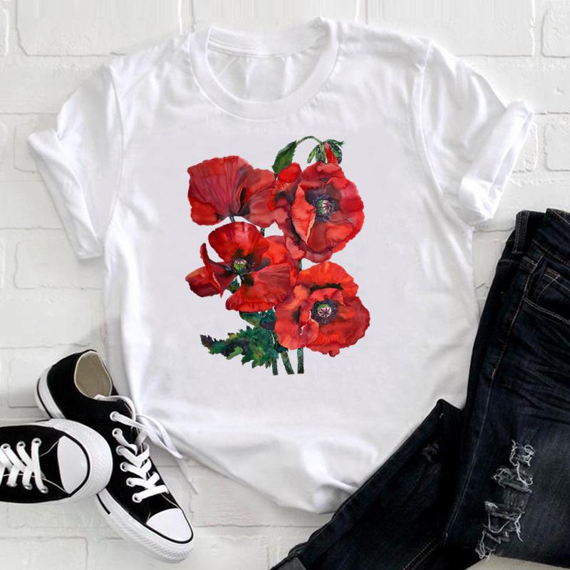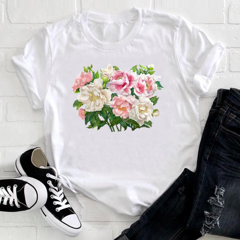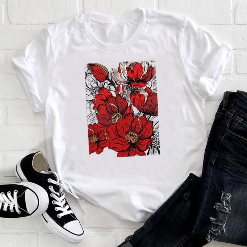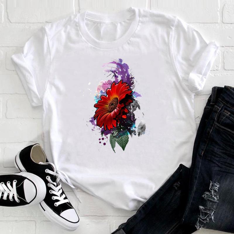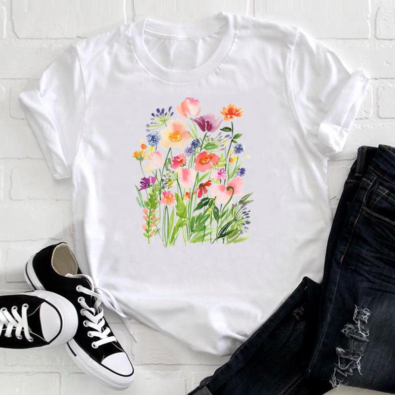 (Азиатский размер)Футболка модная с цветочным принтом в милом стиле, тренд 90-х годов, женская футболка с принтом, одежда, повседневная женская футболка с коротким рукавом и графикой