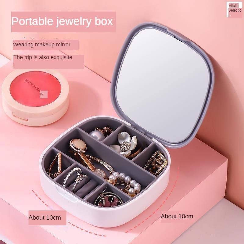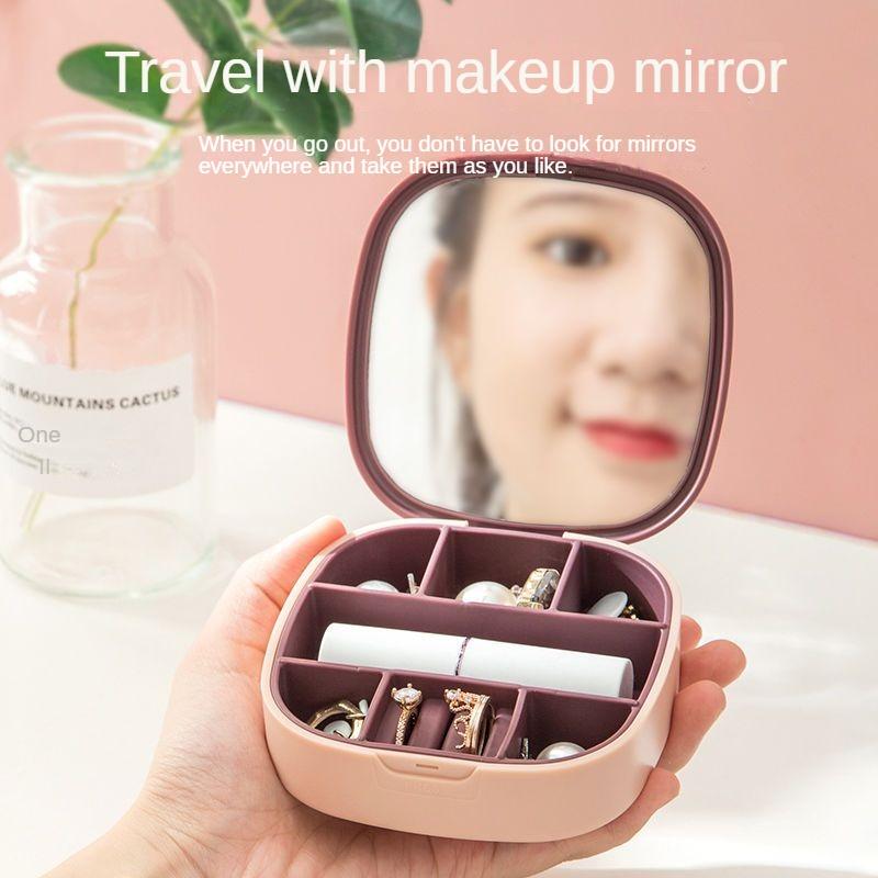 Портативная коробка для хранения ювелирных изделий, косметическое зеркало, дорожное мини-зеркало, удобное портативное дорожное изысканное многоплече...