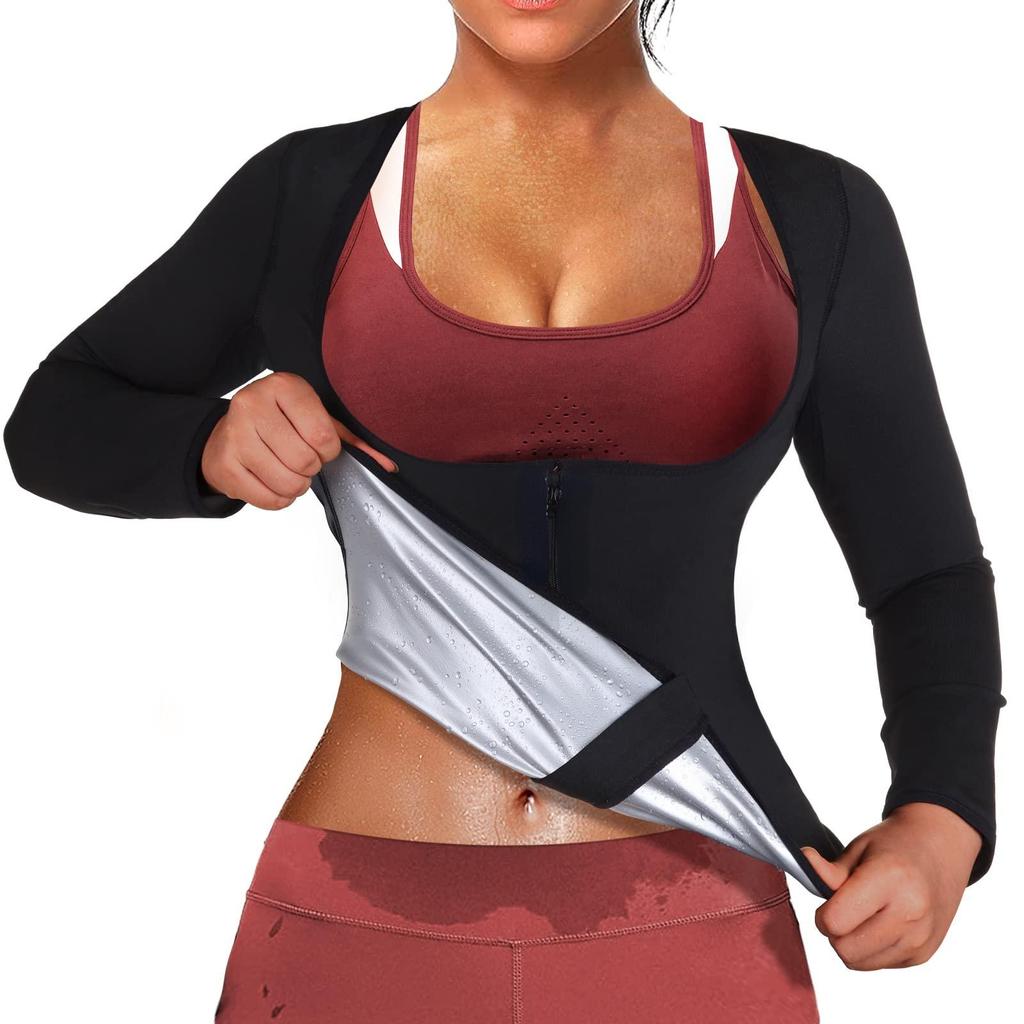 · 【 МОЛНИЯ ДЛЯ ЛЕГКОГО ВКЛЮЧЕНИЯ И ВЫКЛЮЧЕНИЯ 】Костюм для сауны для женщин с молнией легко надевать и снимать, поэтому вы не будете щипать себя во время тренировки, более удобный для вашего спорта. Специальный передний U-образный дизайн этого тренажера для талии для женщин позволяет носить спортивный бюстгальтер под ним.